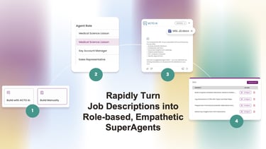ACTO SuperAgents are preconfigured with role-specific skills to support a wide range of Life Sciences functions, including Sales, Medical, Marketing, Learning and Development, Patient Services, and Market Access. Each SuperAgent is designed using the blueprint organizations already have, the job description, to simplify work, eliminate friction, and enable professionals to operate at their highest level.