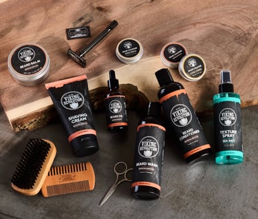 Beard Care: Oils, balms, washes, and conditioners.