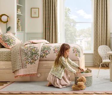Over the past decade, children's home décor has favored a quieter aesthetic, soft neutrals, simple silhouettes, and restrained design. But this spring, West Elm is charting a different course. The furniture and home goods retailer has partnered with Pink Chicken, a children's brand celebrated for its bold, vintage-inspired patterns, to launch a collection that trades minimalism for exuberance.